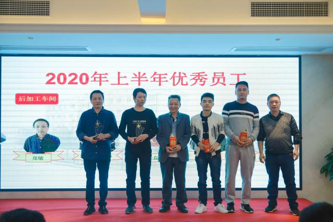 表彰大會(huì)由行政部部長(zhǎng)張炯主持,公司總經(jīng)理沈可仁代表發(fā)言,大會(huì)共設(shè)2個(gè)獎(jiǎng)項(xiàng):疫情期間特別標(biāo)兵及2020年上半年優(yōu)秀員工。 會(huì)議由沙畫展示公司32年發(fā)展歷史拉開序幕,獲獎(jiǎng)員工依次上臺(tái)領(lǐng)獎(jiǎng),沉甸甸的獎(jiǎng)杯代表著公司對(duì)他們工作的認(rèn)同與期望。希望全體員工能夠向這些優(yōu)秀員工學(xué)習(xí),共同開創(chuàng)公司的美好未來!